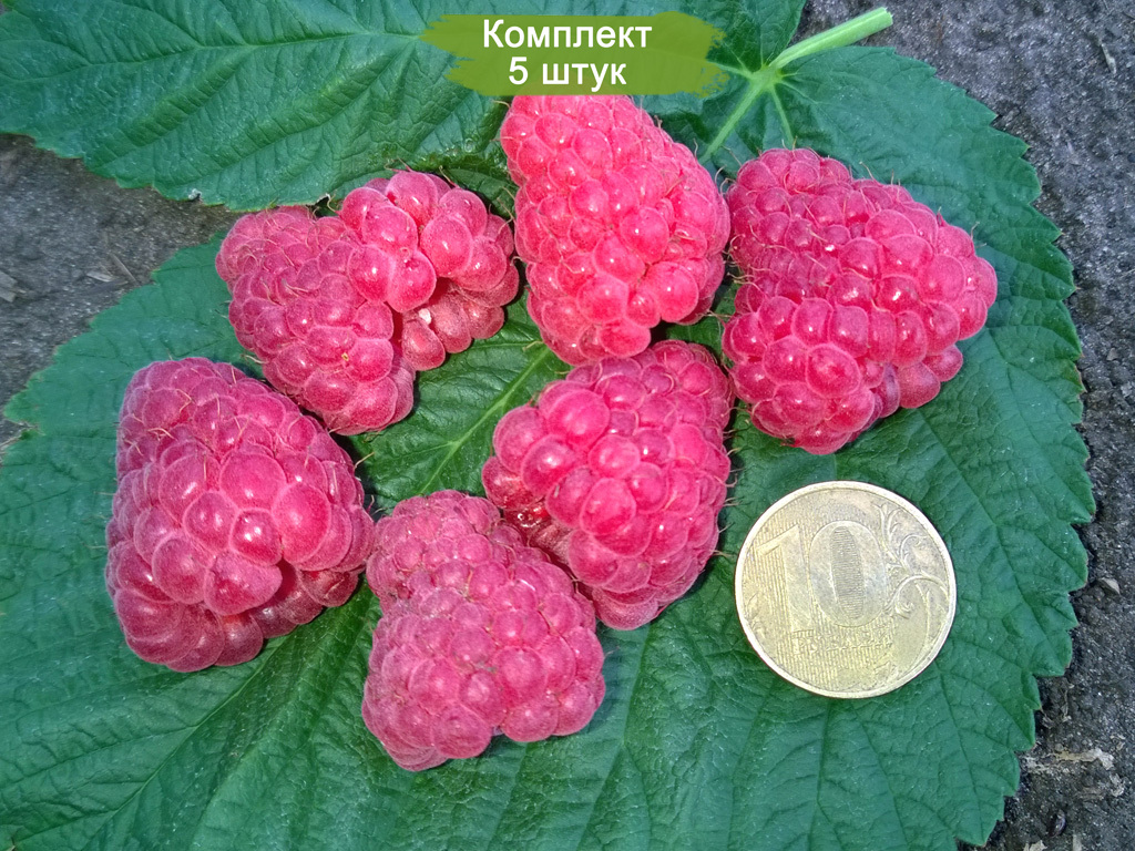 На прочных плодовых веточках формируется до 20 ягод, вес которых варьируется от 4 до 14 граммов. Плоды имеют усеченно-коническую форму, с плотно сцепленными мелкими костянками. Ягоды красного цвета с бархатистой поверхностью, обладают десертным вкусом и характерным малиновым ароматом. Они отлично подходят как для свежего употребления, так и для различных видов переработки.